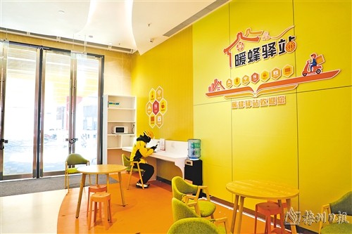 近日,记者走进位于大埔县环城大道的“暖蜂驿站”看到,驿站临近圆通、顺丰等多个快递点,驿站内干净整洁,就餐座椅、冷饮热水、充电插座、应急药箱、微波炉、爱心雨伞等物品一应俱全,“一站式”解决新业态新就业群体“急难愁盼”问题。