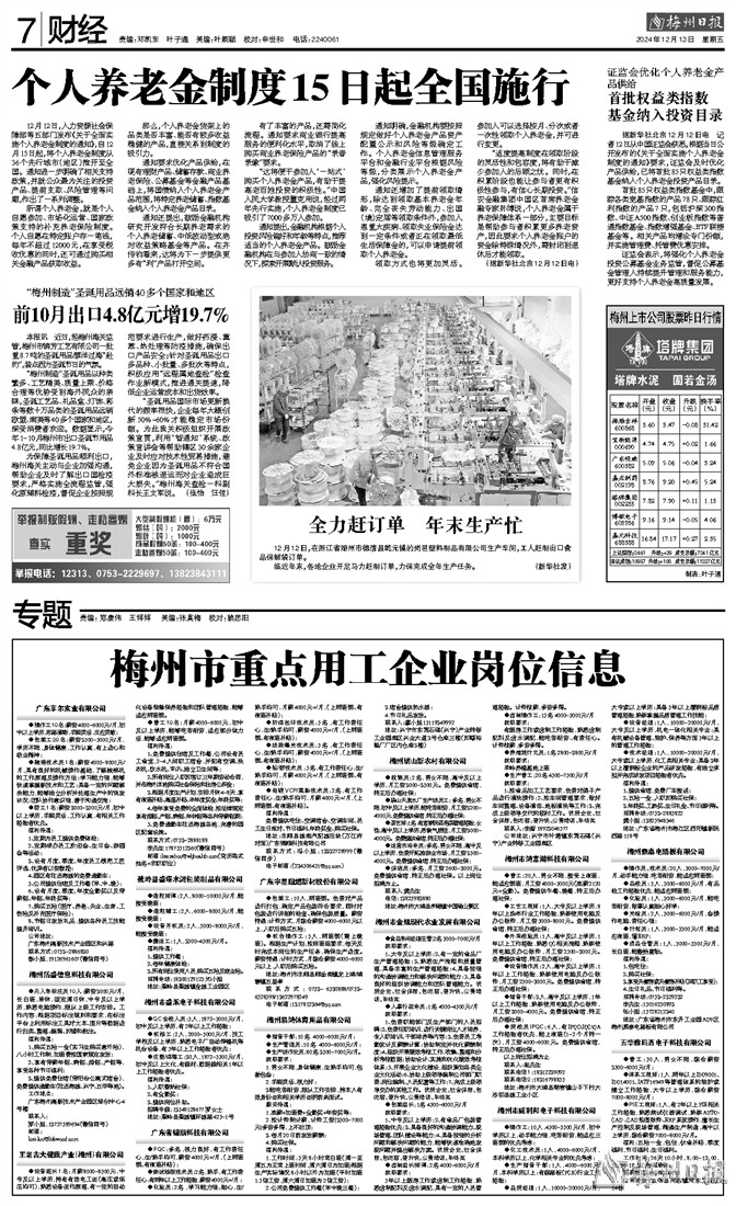●包装工20名:薪资3500-5000元/月,学历不限,身体健康,工作认真,有上进心和敬业精神;