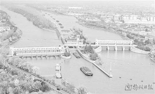 图为江苏省扬州市江都区的南水北调东线一期工程运盐闸、邵仙套闸、邵仙闸洞。