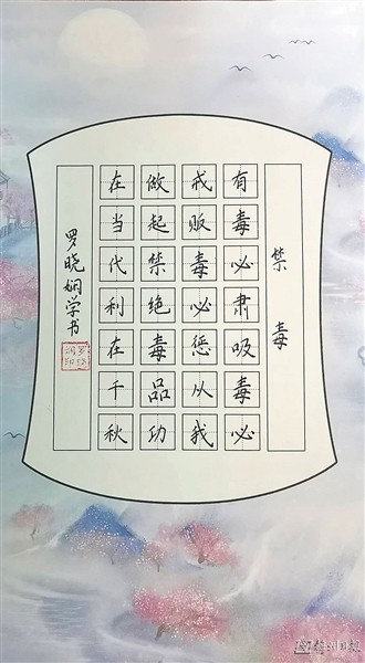 ▲书法 何庆鹏(梅江区元城小学401班)指导老师:叶嘉琪