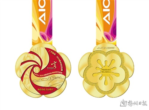 发布会公布了奖牌、参赛服装、赛事路线等情况。其中,奖牌设计围绕“融湾奋发 活力梅州”主题,巧妙融合了梅州的特色元素与赛事精神,正面以足球为核心,辅以动态线条与和谐号高铁等元素,展现出赛事的激情与力量;背面则以3D浮雕梅花为亮点,传递出坚韧与柔美的和谐统一。参赛服装则以红色为底色,T恤正面由赛事logo和足球元素组成。梅州作为“足球之乡”,将足球作为设计焦点,再融入金色旋风的动态线条,表现出比赛的力量与速度。背面以金色书法字体写下“融湾奋发 活力梅州”,体现本届梅州马拉松赛的主题,展示梅州积极融入大湾区发展、充满活力的城市形象。