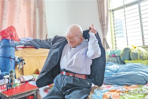 “我爸爸很爱干净,自理能力非常强,每天都是独立穿衣打扮、洗漱吃饭,从来不用别人帮忙。”谢指南二儿子谢友喜说,有时刮风下雨,老人家也会坚持开着电动轮椅、身披雨衣出门转悠。偶尔还会买点自己爱吃的肉菜回来加餐,“他看到有摊主很晚都没有把菜卖完,经常把剩余的菜全部买回来,非常乐于助人。”