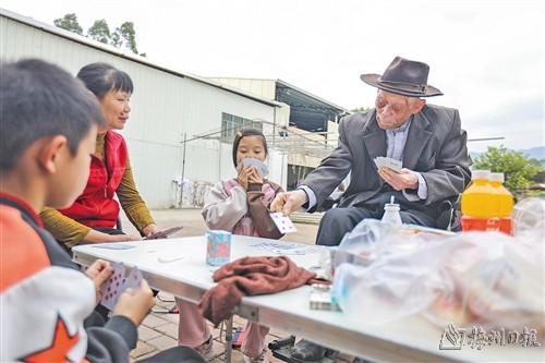 “家有一老如有一宝,看着我爸每天过得很开心,我们全家都很幸福。”在谢友喜看来,父亲年轻时劳作造就的好体格,加上一直以来的规律作息和均衡饮食,都是老人长寿的原因。除此之外,大家公认老人家闲不住、爱助人、热爱生活,也是长寿的“秘诀”。