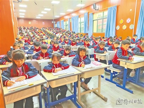 本报讯 12月13日上午,梅县区扶大宪梓中心小学举行 “书以载道,以字育人”第十届百人硬笔书法决赛,共有220余人参加了本次决赛(如上图,张小琴摄)。