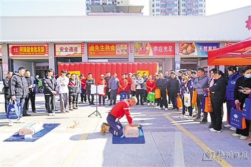 在应急技能培训环节,工作人员示范讲解了心肺复苏、海姆立克急救法、逃生安全结绳、灭火器使用等方面的操作流程和要点,并手把手引导现场群众实操,让大家切实掌握正确的操作要领。“今天学了高层住宅火灾逃生绳结的正确系法,感觉十分实用,回家后我要备好安全绳,也要教会家里人,以防万一。”槐岗村村民侯蓉华说。