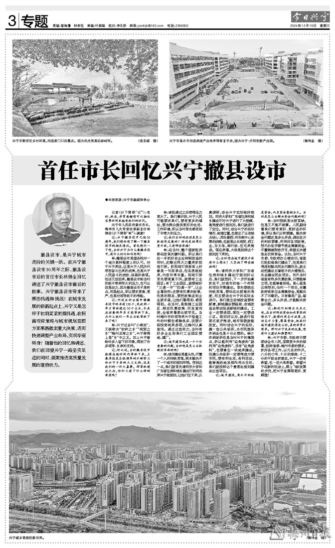 记:都说巧妇难为无米之炊,在当时财政资金如此紧张的情况下,能够利用各方政策,发动各方力量,筹集资金,把我们城市建设得这么好,真的非常不简单。那对兴宁未来的发展,您有什么建议和期望呢?