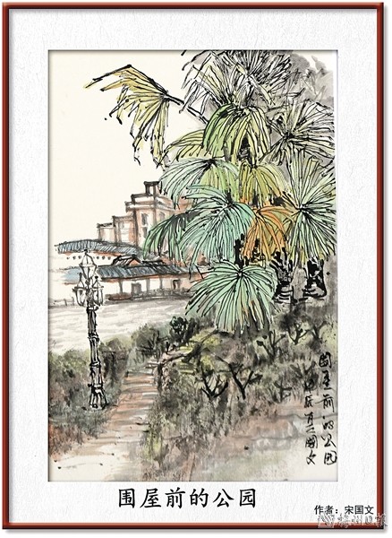 宋国文《围屋前的公园》 国画