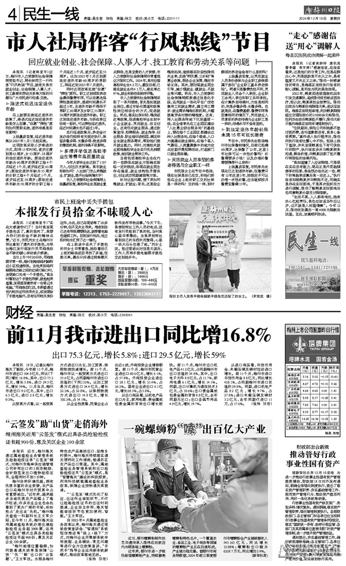 本报讯 (记者陈坚平)近日,梅州市人力资源和社会保障局党组书记、局长林雨兰一行作客“行风热线”节目,就有关我市就业创业、社会保障、人事人才、技工教育和劳动关系等方面的问题与广大市民进行沟通、交流。