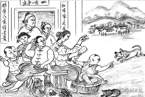 再题世有好妇人,合家大小得人心。 夜坐间房思缝补,做花绣朵助夫君。 纺棉织线挪索子,花针钻子不离身。 点评:作者对好妇道进行高度赞扬。在客家人看来,好妇道的标准是这样的:每日夜晚坐在闺房里缝补衣衫,也会绣花,还会纺棉织线挪索子,花针钻子从不离身,一有空闲,即忙“女红”,受到合家大小的欢迎。“钻子”,穿针引线的工具。 |