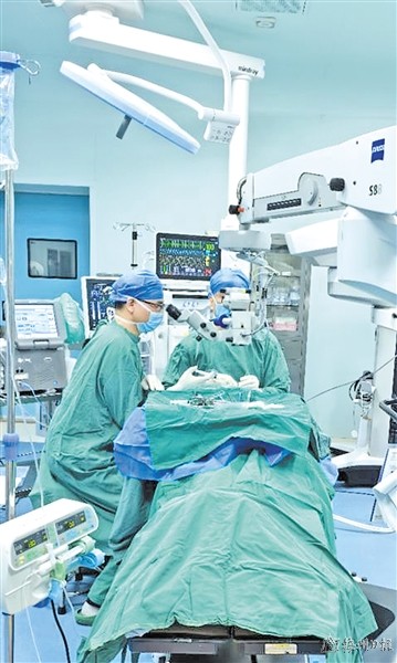 本报讯 近日,兴宁市人民医院五官科顺利完成“高难度”白内障手术一例,让87岁高龄且驼背的江奶奶重获光明。