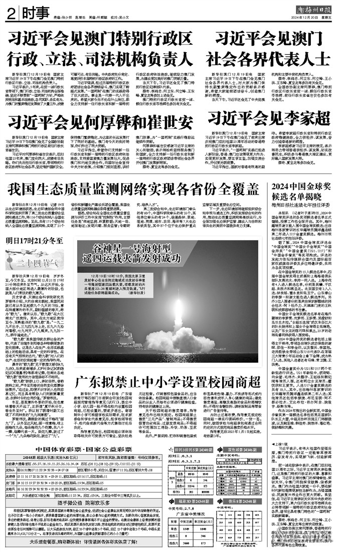 本报讯 (记者叶子通)昨日,2024中国金球奖评选的各奖项候选者名单正式揭晓,投票工作也全面开启。其中,梅州籍球员谢文能入围中国金球奖候选;出自梅州客家青训的五华籍球员魏祥鑫连续第二年进入U17金童奖候选。梅州日报社连续七年担任评委。