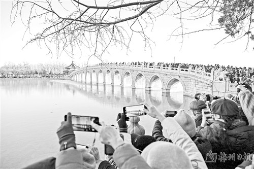 每逢冬至前后,北京颐和园十七孔桥便会上演“金光穿洞”的自然奇观。