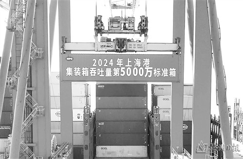 12月22日,上海港2024年集装箱吞吐量突破5000万标箱,成为全球首个突破5000万大关的集装箱码头。