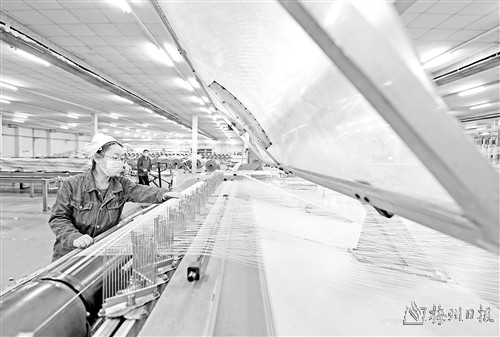 近日,工人在河北省晋州市一家纺织企业的生产车间工作。
