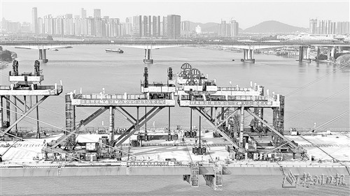 当日,由中交路建承建的顺德大桥顺利合龙。位于广东省佛山市顺德区的顺德大桥是主跨626米的超大跨径钢混组合索塔斜拉桥,索塔采用变截面H型塔柱,塔高分别为204米、151米。大桥建成后将有效打通顺德融入粤港澳大湾区“一小时交通圈”的内部区域道路瓶颈。(新华社发)