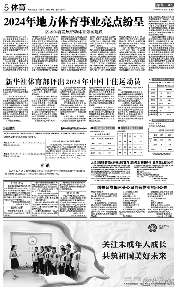 新华社北京12月25日电 新华社体育部评出2024年中国十佳运动员如下(按姓名首字笔画排序):