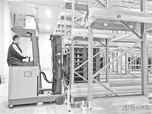 走进该公司的智能化冷库,三层立体货架井然有序,机械臂操控的小型装卸叉车灵活穿梭其间,精准高效地完成货物存取作业。据公司总经理赖摇铃介绍,经过智能化升级,冷库的存储容量从原先的300吨提升至3500多吨,人力成本大幅降低,运输时效与库存管理能力显著提升。同时,公司紧跟市场需求与自身发展规划,持续引进智能化设备,加速智能化升级,产能实现了质的飞跃。“我们还根据产能的需要,增加了一套智能化杀菌系统设备,以前的杀菌系统每天的产能只有40吨,这套设备可以达到60吨以上。”赖摇铃说道。