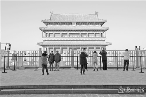 图为12月26日,参观者在正阳门箭楼上拍摄正阳门城楼。