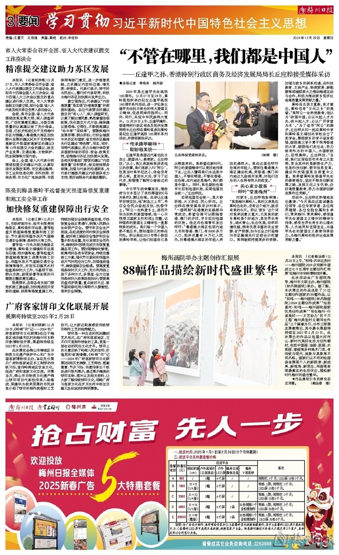2024年是丘逢甲先生诞辰160周年。12月27日至29日,蕉岭县组织举办纪念丘逢甲诞辰160周年系列活动,进一步弘扬丘逢甲先生抗日保台的伟大爱国主义精神,促进两岸同胞同心、同向、同行,共促中华民族伟大复兴。12月28日上午,丘逢甲嫡孙、香港特别行政区商务及经济发展局局长丘应桦在蕉岭县参加蕉岭县纪念丘逢甲诞辰160周年系列活动,并接受媒体采访。