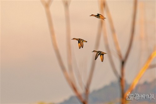 冬季的脚步悄然来临,梅州大地依然温暖,丰富的生态资源让她成为了众多鸟类栖息的理想之地。11月起,候鸟们纷纷踏上南迁之旅,梅州辖区内的自然保护区、城市湿地公园、河流水库、湖泊、滩涂地以及水稻田等,逐渐迎来了远方的“客人”,它们在晨雾中挥翅略过水面,脚尖轻点,点活了梅州这片水墨丹青。