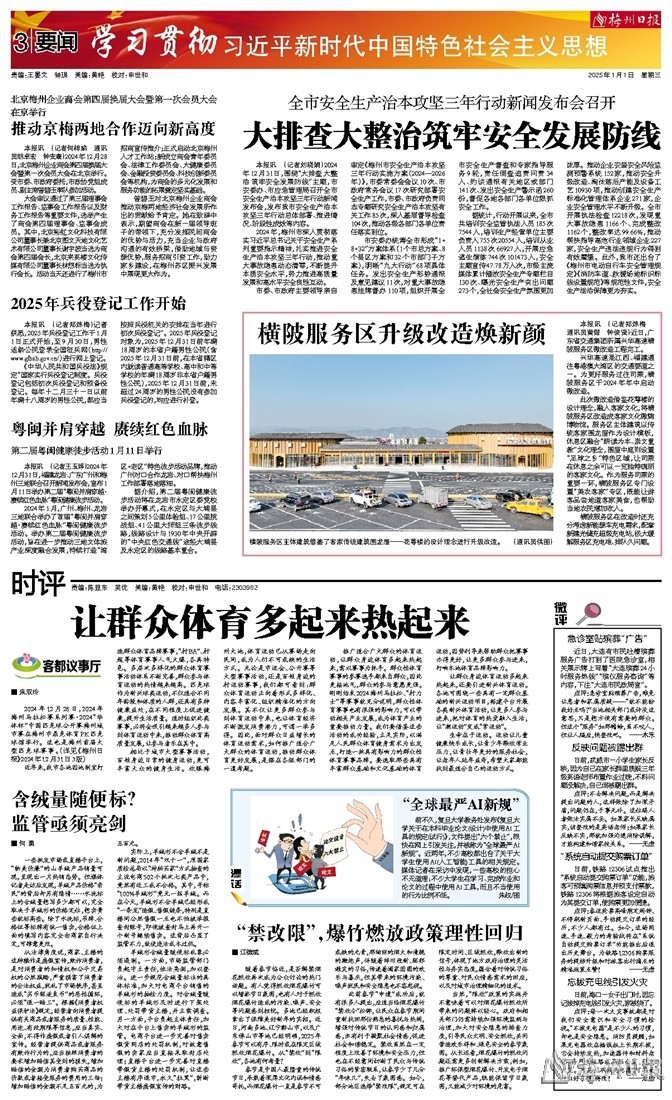 2024年,梅州市深入贯彻落实习近平总书记关于安全生产系列重要指示精神,扎实推进安全生产治本攻坚三年行动,推动重大事故隐患动态清零,不断提升本质安全水平,努力推进高质量发展和高水平安全良性互动。