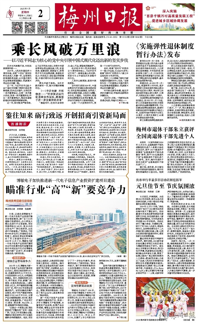 坚持不断创新是博敏电子快速发展的最重要原因。“我们每年投入到平台建设和人才引育的研发资金达6000万元以上,占销售收入比重长期保持在3%以上。”博敏电子股份有限公司技术管理部总监陈世金说,目前博敏电子已与电子科技大学、重庆大学、广东工业大学等高校开展了深入的产学研合作,2024年还利用梅州“鸿雁计划”引进了以电子科技大学专家教授为核心的创新团队。2024年3月,博敏电子股份有限公司获批创建“省市共建高密度混合集成印制电路广东省重点实验室”,成为梅州在高端印制电路板产业建设的首个省重点实验室,为梅州推进苏区融湾先行区建设、推动产业科技互促双强、加快形成新质生产力注入源头活水。