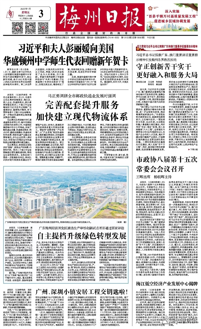 本报讯 (记者罗诚浩 特约记者辜昀玥)1月2日,市委书记马正勇来到梅县区、梅江区,深入企业、快递物流点,就认真贯彻落实党的二十届三中全会精神和习近平总书记视察广东重要讲话、重要指示精神,学习贯彻省委十三届六次全会精神,进一步推动快递物流业高质量发展进行调研。