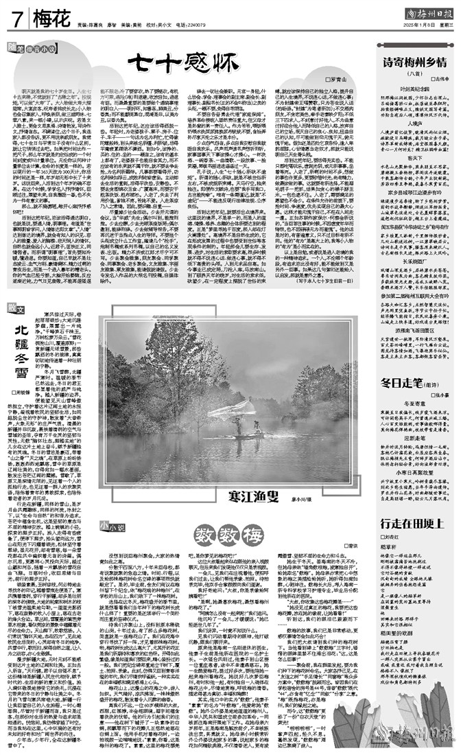 明天就是我的七十岁生日。人生七十古来稀,不觉就到了“古稀之年”。按规矩,可以做“大寿”了。大人物做大寿大摆筵席,大宴宾客,祝寿者排成长龙;小人物也会召集家人,呼唤亲朋,做三滋两味、七荤八素,来一顿小嘬,以示庆祝。若是文人雅士,更会文思泉涌、诗情勃发,写诗作文,抒情言志。不瞒诸位,这个日子,我连家人都没告诉,更不用说亲戚朋友。我觉得,七十生日与平常日子没有什么区别,就让它悄悄过去吧。如果把时间比作一把尺子,那么年岁就是约定俗成的一个时间刻度或叫计量单位。无论你以何种计量单位去计算,生命的长度是一样的。若以现行的一年365天改为300天计,你活的时间还是一样,年岁却无形中长了十来岁。话说回来,人活到这个年岁的确不容易。在这个时候,学学名人抒抒情怀,回顾过往,展望未来,自我激励一番,也不失为一件有意义的事。