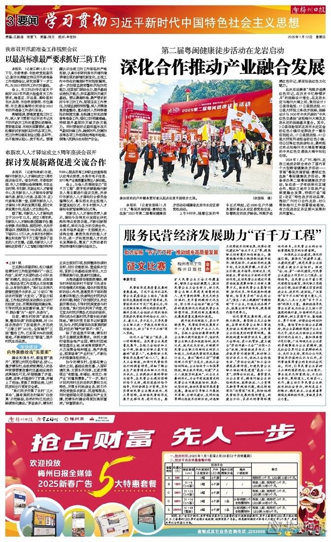 民营经济是高质量发展的重要基础。习近平总书记在民营企业家座谈会上指出,“我国经济发展能够创造中国奇迹,民营经济功不可没!”笔者认为,作为党联系职工群众的桥梁纽带,梅州各级工会组织必须找准找实服务民营经济的结合点、切入点、着力点,多方发力,引导民营企业职工进一步激发创新创业创造活力,助力“百千万工程”深入实施。