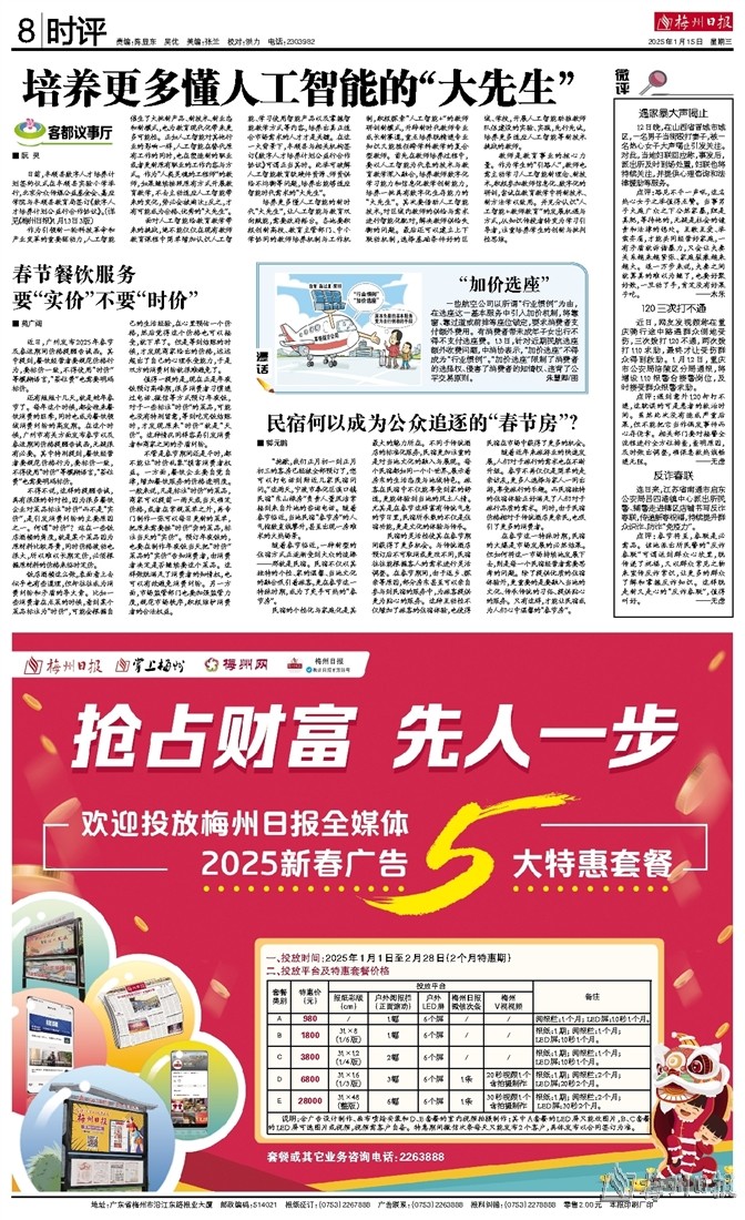 还有短短十几天,就是蛇年春节了。每年这个时候,都会迎来餐饮消费的旺季,同时也成为餐饮领域消费纠纷的高发期。在这个时候,广州市有关方面发布春节以及春运期间价格提醒告诫函,无疑很有必要。其中特别提到,餐饮经营者要规范价格行为,要标价一致,不得使用“时价”等模糊语言,“茶位费”也需要明码标价。