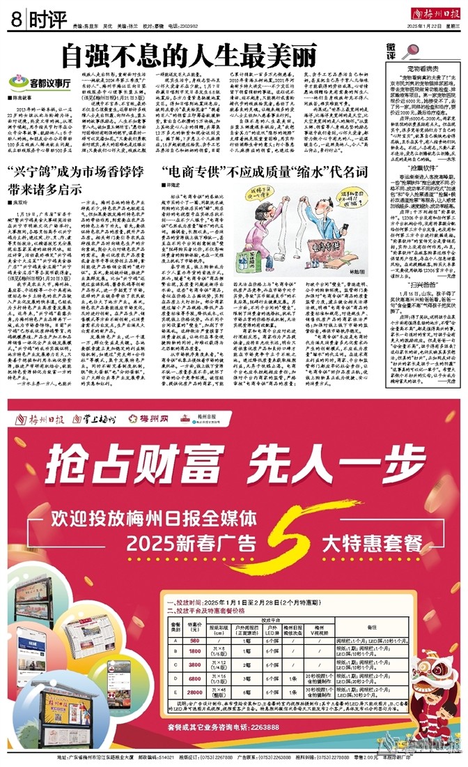 2013年的一场车祸,让一名22岁的女孩从此与轮椅为伴。面对逆境,热爱文学的她,从深渊中崛起,用手指关节打字在公众号分享故事、鼓励他人;乐于助人的她,和朋友合办公司帮助100多名残疾人解决就业问题,成立助残服务中心帮助500多名残疾人走出阴影,重新面对生活……她就是2024年第三季度“广东好人”、梅州市梅江区向日葵助残服务中心理事长蓝玉娜。(详见《梅州日报》1月21日3版)