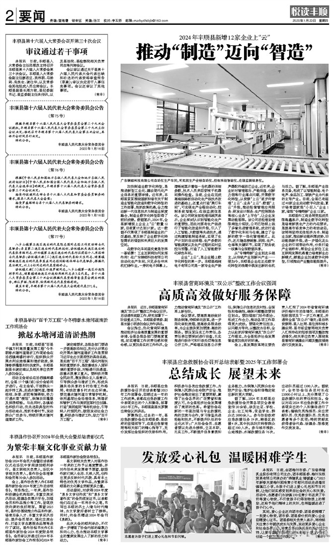 加快制造业数字化转型,是推进新型工业化、建设现代化产业体系的重要举措。近年来,丰顺县紧紧围绕国家和省市关于制造业智能化改造和数字化转型的工作部署,抢抓政策机遇,全力推动新一代信息技术与制造业深度融合,制造业数字化转型取得了较好成绩。数据显示,2024年,全县新增规上企业上“云”数量12家,目前累计达到37家。这一数据不仅展现了丰顺县制造业的广泛基础,更反映了企业数字化转型需求的强劲和未来巨大的发展空间。