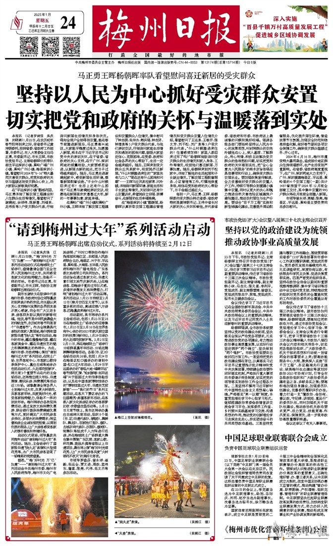 据悉,“‘梅’好时光 万‘巳’如意”——“请到梅州过大年”系列活动由中共梅州市委、梅州市人民政府指导,梅州市文化广电旅游局、广州对口帮扶协作梅州指挥部和梅江区、丰顺县人民政府联合主办,梅县区、兴宁市、平远县、蕉岭县、大埔县、五华县人民政府和梅州市广播电视台、广东客都文旅有限公司共同协办。系列活动旨在通过客家文化、非遗元素引领文旅节庆新风尚,让在梅游客、回梅游子重拾过年仪式感,多措并举激发文旅消费潜力,打响“请到梅州过大年”活动品牌。系列活动从1月23日持续至2月12日(腊月廿四至元宵节),以丰富多彩的活动,真诚迎接八方游客、四海嘉宾来梅州过大年。