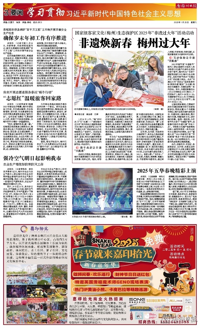 本报讯 (记者赖锋 特约记者曾文敏 周扬)1月24日晚,五华县2025年春节联欢晚会(以下简称“五华春晚”)在该县长乐公园书卷舞台精彩上演,为全县150万群众献上一场具有浓郁特色的文化盛宴,送上新春美好祝福。
