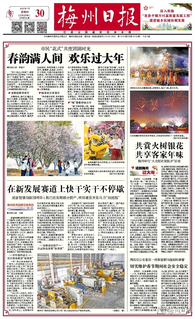 “好久没这么热闹了,感觉春节的年味又回来啦!”今年是首个“非遗版”春节。在梅州,各个休闲场所格外热闹,大批市民走出家门,在欢声笑语中共度佳节,一张张笑脸构成了这个春节最动人的风景,折射出幸福团圆的美好生活。