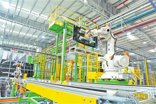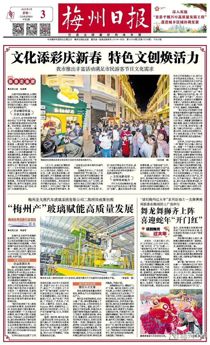 在梅州圣戈班汽车玻璃系统有限公司二期项目生产车间,目之所及皆是繁忙的生产场景:机械手臂在车间里挥舞,一件件玻璃产品在自动化流水线上传输……据悉,该公司二期项目自2024年4月正式投产,截至当年12月已创造1亿元的产值,成果初现,未来可期。