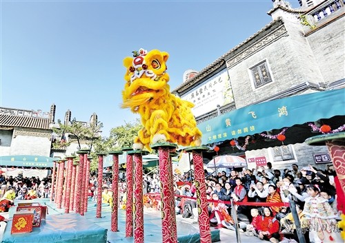醒狮表演在南粤大地上是节日里不可或缺的存在。