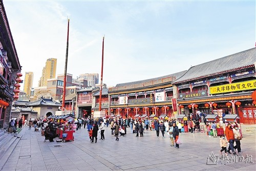 逛庙会、赏民俗、听相声、品小吃,成为游客和市民们不可或缺的节日体验。特别是杨柳青年画、泥人张彩塑以及蔡氏贡掸等天津特色非遗项目,以其独特的魅力吸引着八方来客,让人们在欣赏中感受到传统文化的深厚底蕴。津门年味,是一种文化的传承,是一种情感的寄托,更是一种生活的态度。