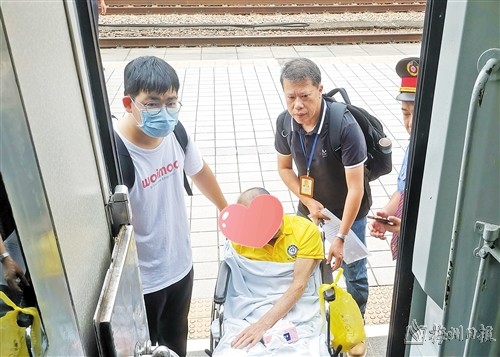 那趟耗时两天一夜的“日夜兼程返乡路”,陈涛带着联合护送队队员轮班照顾没有自理能力的姚老伯。车上同行的乘客见到这一幕幕,都夸赞老伯的“孩子们”对老伯照顾得真仔细,在得知真相后更是不断点赞。