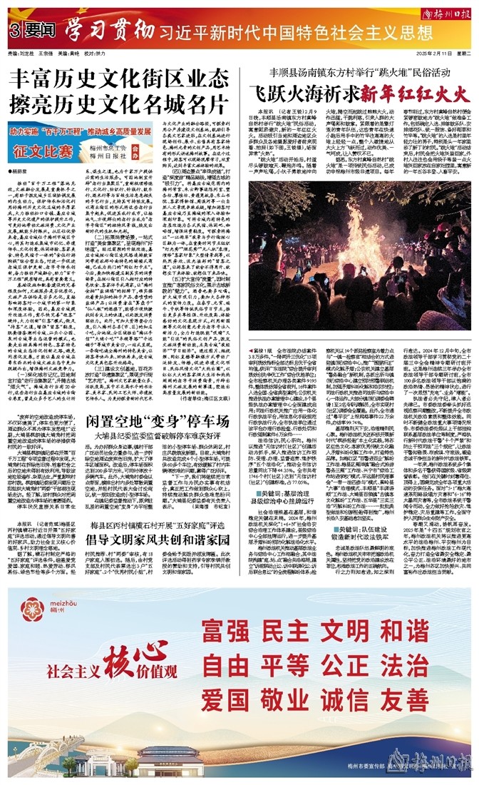 推动“百千万工程”落地见效,文旅融合发展是重要抓手之一,有助于激发城乡区域协调发展的内生动力。保护传承和活化利用好梅州历史文化名城的丰厚家底,大力推动松口古镇、嘉应古城等历史文化遗产的保护提升工作,可更好地带动文旅消费、文化产业发展,赋能乡村振兴。从区位优势来看,嘉应古城位于梅州市城区中心,将其打造成集城市记忆、非遗传承、文化创意、休闲体验、客家美食、特色民宿于一体的“食住行游购娱”综合型业态,对进一步促进老城区保护更新、老字号传承创新,奋力推动产城融合,助力“百千万工程”提质增效,具有重要意义。