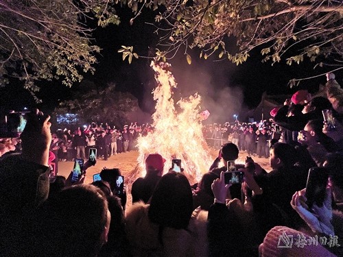 本报讯 (记者王锐)2月9日晚,丰顺县汤南镇东方村真峰自然村举行“跳火堆”民俗活动,寓意驱邪避灾,新的一年红红火火。活动吸引当地和周边地区众多群众及各地摄影爱好者前来观看、拍照(如下图,王锐摄),场面异常“火热”。