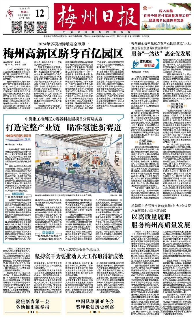 记者采访了解到,梅州压力容器科技园项目二期,瞄准氢能这一新能源赛道,重点布局高压气态储氢容器生产线。随着氢能产业的蓬勃发展,高压气态储氢技术已成为目前唯一实现商用的储氢技术。