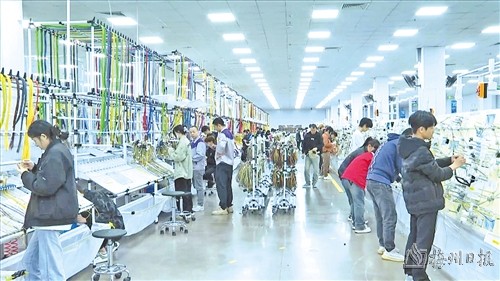 在立讯精密汽车线束车间,工人们在生产线上紧张忙碌。眼下,企业大力抓生产,岗位需求快速释放,招聘活动也正在火热进行。企业相关负责人表示,目前企业订单量充足,需要大量新员工加入团队。