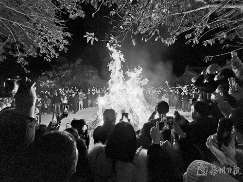 据悉,东方村真峰自然村“跳火堆”是一项传统民俗活动,已成功申报梅州市级非遗项目。每年春节刚过,东方村真峰自然村便会紧锣密鼓地为“跳火堆”做准备工作,包括确定人选、排练鼓乐队、安排烟花队、统一服饰、备好稻草和竹竿等。“跳火堆”的人选是村里年轻力壮的男子,特别是头一年家里添了新丁的村民。“跳火堆”活动结束后,村民会把火堆灰装回家,外村人往往也会用袋子等装一点火堆灰回家放在自家灶膛里,寓意新的一年五谷丰登、人畜平安。(王锐)