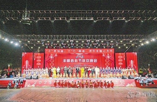 春风春日春满园,金蛇舞动迎新岁。1月26日,“丰”景如画,万“巳”顺遂,请到丰顺过大年——2025年丰顺县春节联欢晚会在县城新世纪广场燃情上演。县委书记张志锋,县长罗达祥,县政协主席李瑞金,县委副书记、政法委书记张晓山,广东省丰顺商会会长许少林等领导和嘉宾,同全县各界群众代表欢聚一堂,观看演出。