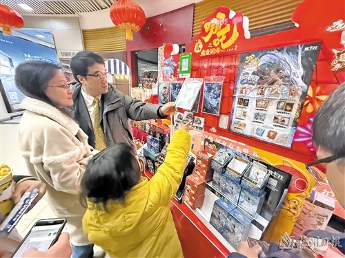 电影《哪吒2》自1月29日上映以来,深受观众喜爱。据网络平台数据统计,该电影票房总数已超一百亿元。电影的热映同时带动其衍生产品热销。(新华社发)