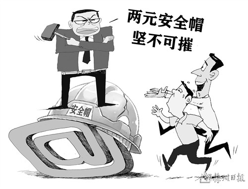 安全帽承担着保护作业人员头部安全的重任,其质量是否合格、达标至关重要。有媒体记者在多个建筑工地走访时发现,工人不佩戴安全帽、所佩戴安全帽超过使用期限,甚至用所谓“防尘帽”冒充安全帽的乱象依然存在。在网络平台上一些商家推销的安全帽,售价从一两元到几十元不等,但越是售价低廉的安全帽,商家越是卖力证明自家安全帽的性能。 朱权/图