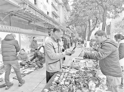 2020年,应广大收藏爱好者的要求,兴宁市民间收藏协会在宁江路、公园路、文化路等地开设文玩交易圩,定于每月的最后一个星期六为交流日。这一举措迅速吸引了来自全国各地的藏家,尤其是闽湘赣和兴宁周边市县的收藏爱好者。每逢交流日,近百个交易摊点前藏品丰富,熙熙攘攘、交易活跃,成为兴宁文玩界的一大盛事。