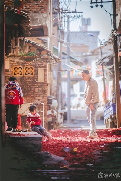 晴暖的阳光不知不觉便消散在村庄里此起彼伏的鞭炮声中,年夜饭吃的是酿豆腐及速冻饺子。大门上的对联贴满喜庆,屋檐下的灯笼挂着吉祥如意,与妻儿通了一番电话,永生此刻是哪都不想再去。浓浓的硝烟味道不断地催促着新年的钟声尽快降临,远处孩童们的欢呼一阵一阵地勾起许多旧时记忆。硝烟浓烈而呛人,却是永生喜欢的味道。就是在这个禾坪,父亲鼓励着他第一次点燃了一整排的鞭炮;也是在这个禾坪,他欣喜地抱着半岁的儿子数着空中绽放的烟花,迎接许多和着夜色前来贺喜的狮队。若是老墙能语,或许它此刻就会与他述说许多尘封的往事;若是枯枝能描,或许它此刻也会为他勾勒老宅未来的景致。