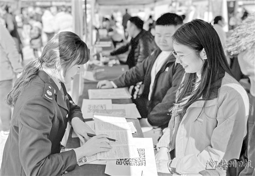 本报讯 (记者张怡 通讯员郑璐滢 梁慧萍)近日,梅江区税务局以“税收优惠添活力,创业就业梦可期”为主题,组织“嘉应税骑·梅江税云通”税收宣传团队走进梅州万达广场“春暖梅江”新春大型招聘会,通过“政策直通车+服务零距离”模式,为100余家参会企业和3200余名求职者送上新春“政策礼包”,实现就业服务与税收宣传深度融合,助力区域经济开年稳岗拓岗。